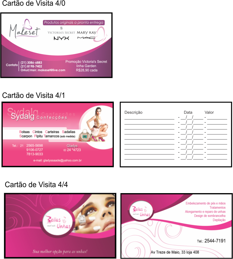 OBS: 4/0 – Impressão Colorida Frente, 4/1 – Impressão Frente Colorida + Impressão verso em Preto, 4/4 – Impressão Colorida Frente e Verso.